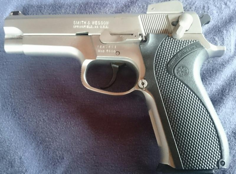 Exacto. Es una S&W, tercera generación, Standard 5906, 4 pulgadas. Buen arma de servicio de los años 90 en USA, antes de la irrupción del .40SW.