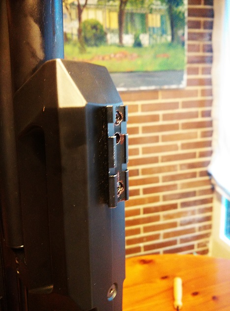 Trae por la parte superior un encaje para un carril standard RIS, que se le quita en 2 minutos con una lima pequeña, para no hacer ese rebaje en la madera.