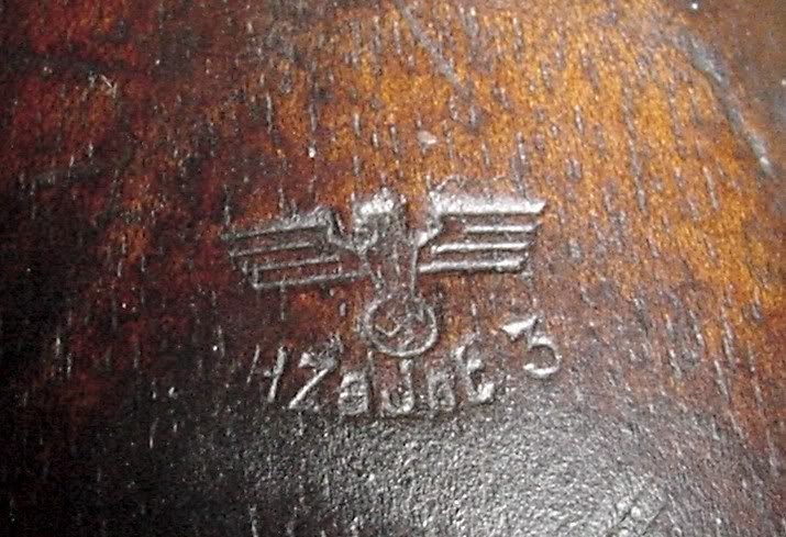 Pasemos al marcaje HzAJt 20. Significa HeeresZeugamt Ingolstadt 20, o sea un establecimiento relacionado con el ejercito, y destinado a la reparación, el reacondicionamiento el almacenamiento y la redistribución del material militar y del armamento. Se encuentra en numerosas piezas de armamento y equipos militares, como cachas, culatas, fundas de cuero, además de las piezas mecánicas de las armas.