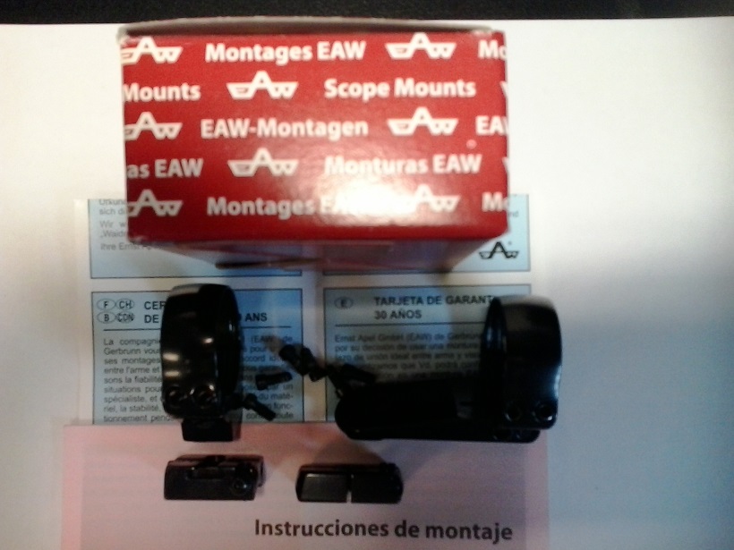Vendo monuras completas Apel para tubo de 30 mm. anilla delantera con pata larga, altura media, con instrucciones de montaje, montadas en un Voere 2165, luego válidas para acción M98, perfectas