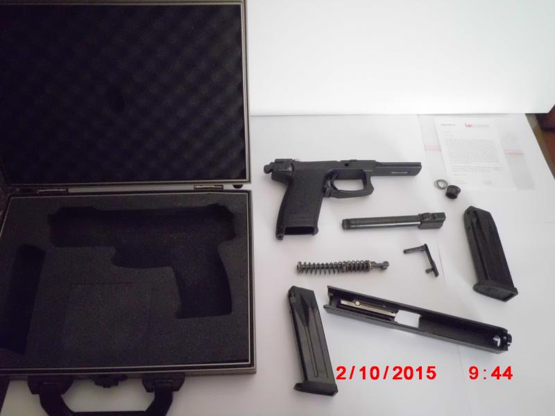Una vez desarmada la pistola, podemos ver que el acabado interior es casi tan bueno como el exterior, apreciando el mismo tratamiento electroquímico que le otorga ese particular acabado negro a las superficies. También podemos apreciar el largo tubo cañón, con una rampa de elevación magníficamente pulida, de pronunciada acanaladura, bordes biselados y adecuado ángulo, que seguramente es capaz de alimentar los cartuchos más difíciles. El interior del tubo está cromado y utiliza el característico estriado poligonal de Heckler & Koch.