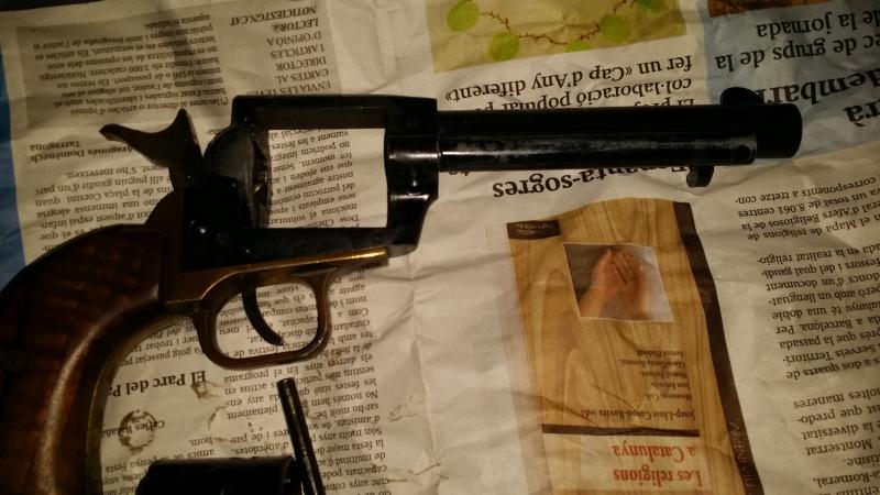 el estado no es perfecto a la vista esta en las fotos,pero lleva laton ,el me1873 no lleva laton,y vale 360e,y ya he comenado lo del tambor retorcido tanto en el me 1873 como en el weihreauch wsa ,los uberti y los pietta tambien tiene el tamabor chungo,este revolver el fogonazo aun sale por el cañon y no entre el armazon y el cañon como los de ahora.