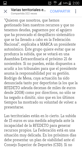 Hoy mismo hemos tenido conocimiento de la propuesta realizada por nuestro Presidente Rodrigo de Mesa el pasado día 24/10 a varios miembros de confianza de su Junta Directiva para que apoyen y respalden el próximo 31 de dicho mes (esta vez en reunión oficial), una subida de entre 15 y 30 euros la licencia única para el próximo año 2016, que revertirá única y exclusivamente en las arcas de la RFEDETO