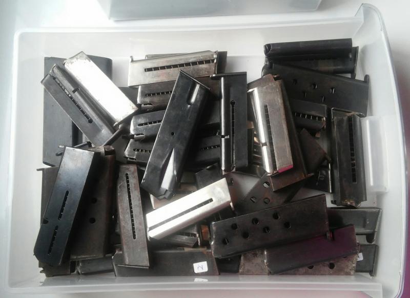 Se venden un total de 170 cargadores disponibles, casi todos de armas antiguas. Hay cargadores de astra, llama, star, fn, ruby... Hay de varios calibres de 9mm corto, 9mm parabelum, 7.65, 6.35, 9mm largo y 45 acp.Los precios van desde los 27 euros hasta los 37, con los portes incluidos. A ser posible contactar por privado o whatsapp para consultar modelos.