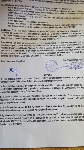 Esta es parte de la carta que se le remitió hace casi un año al presidentente de la Federación Vasca, Patxi Alonso Peskera, alertándole, sin éxito, del riesgo que conllevaba para el bolsillo de los tiradores de a pie suscribir el convenio de adhesión a la licencia única en los términos que planteaba la Española (con cláusula suelo pero sin techo para la revisión anual de su precio):