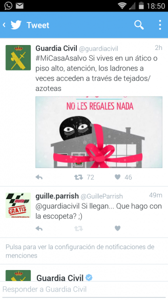 Pues me viene al pelo estas fotos de la conversacion que he tenido hoy con la GC via tweter