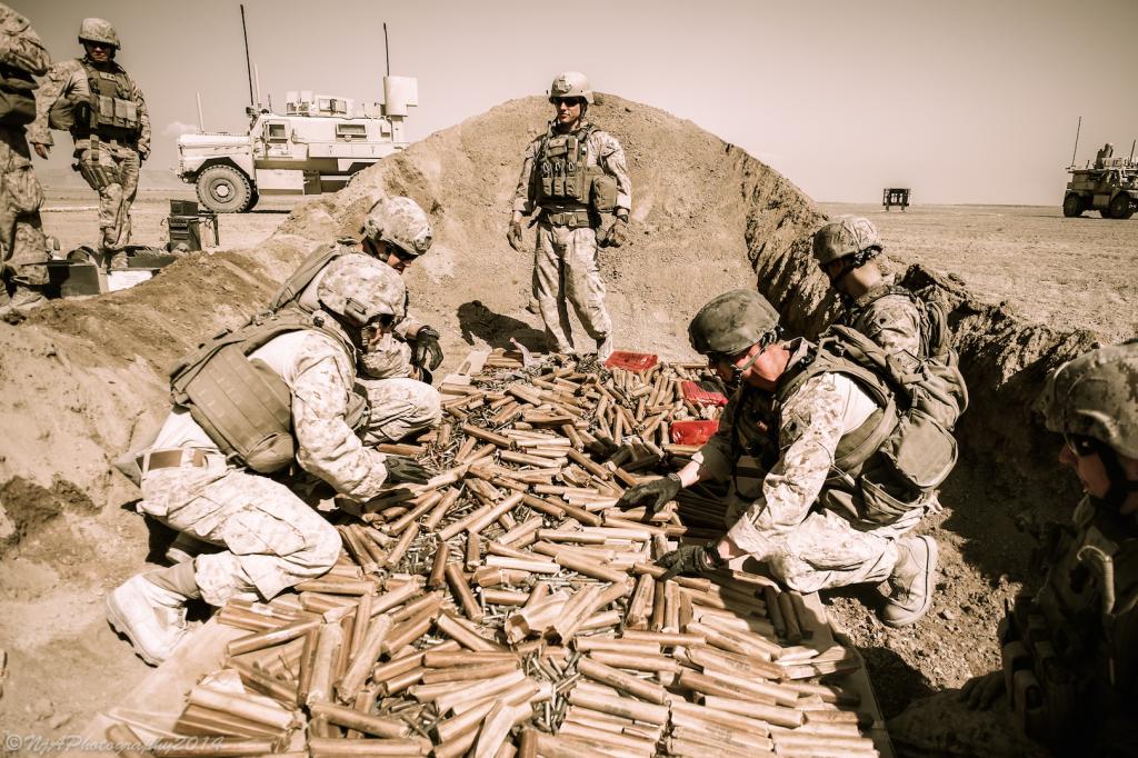 una foto de municion en afganisthan, apunto de ser destruida con dinamita.