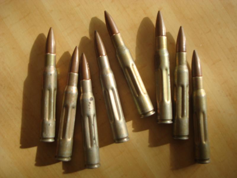 Cartuchos inertes de manipilación de 30-06 del Arsenal de Frankfort (Philadelphia), vaina de acero cincado con seis acanaladuras. Son del 1944. Los ocho por 40€ con envío en península. Las marcas son "F A 4".