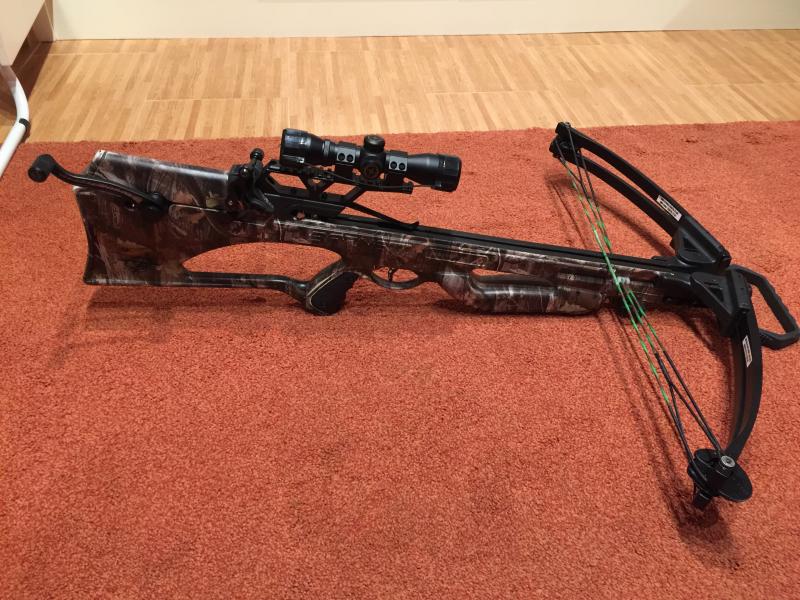 hola tengo yo una ballesta nueva barnnet 150 libras con carraca para cargar puntas flechss culatines luminosos etc nuevo