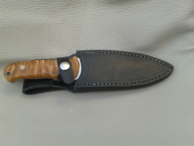 Cuchillo de medidas contenidas, realizado en acero N690 Cº de 4´- mm. de grosor y encabado con madera estabilizada.