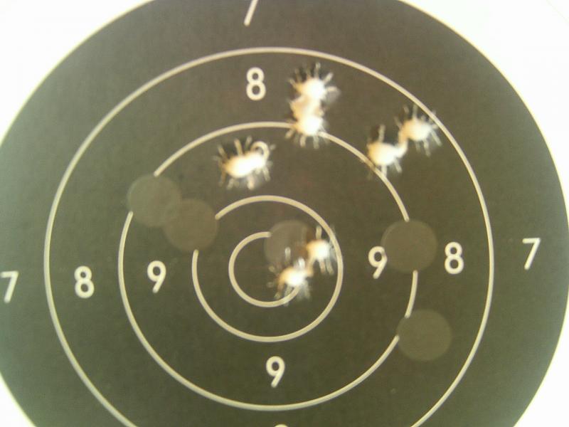 Pido escusas por la calidad de las fotos, entre que la máquina es de los chinos y que la muevo al sujetar el blanco con la otra mano, el resultado es penoso. En el futuro al menos fijaré el blanco para que no salga tan movido.