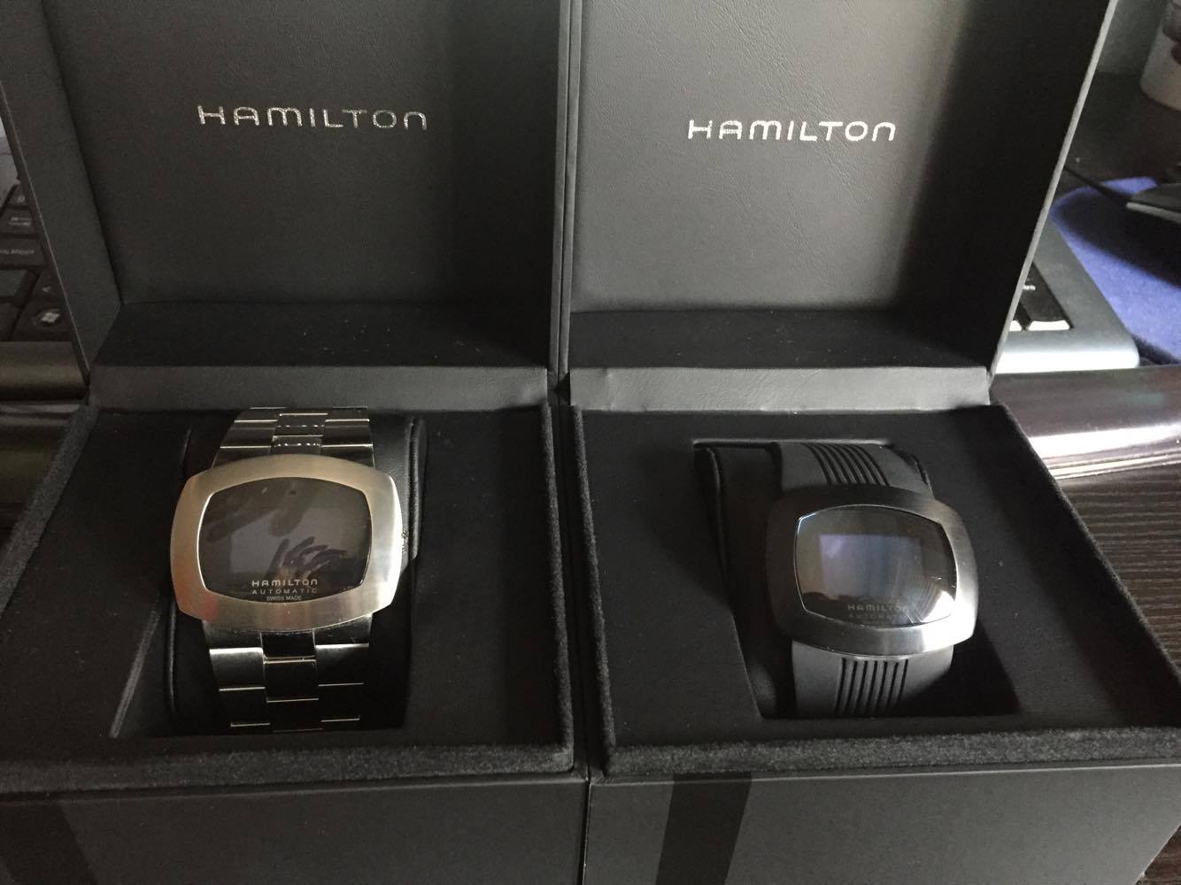 Hola Compañeros de armas , cambiando un poco de aires , pongo en venta 2 unidades de relojes marca Hamilton modelo Pulsomatic. una unidad es de correa acero inox y la otra de correa de caucho. Su funcionamiento es automático y es digital.