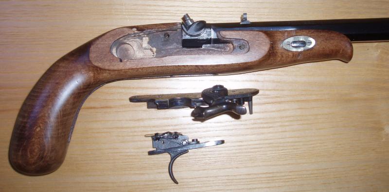 La presión del disparador ahora no está al pelo pero si aceptable, pero hasta que no le ponga una nuez con mosca y brida no se puede poner más al pelo. Lo que no entiendo es porqué no venden esas piezas por separado, porque en el tema de la avancarga los arreglos y afinar las armas es parte importante de la afición.