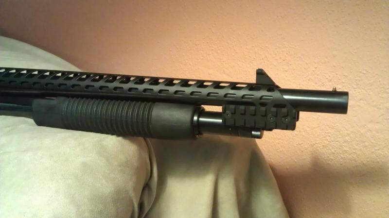 hay va como queda ya montado sobre la mossberg 500 con cañon de 51 cmambien para cañon mas largo pero creo que queda mejor con uno corto