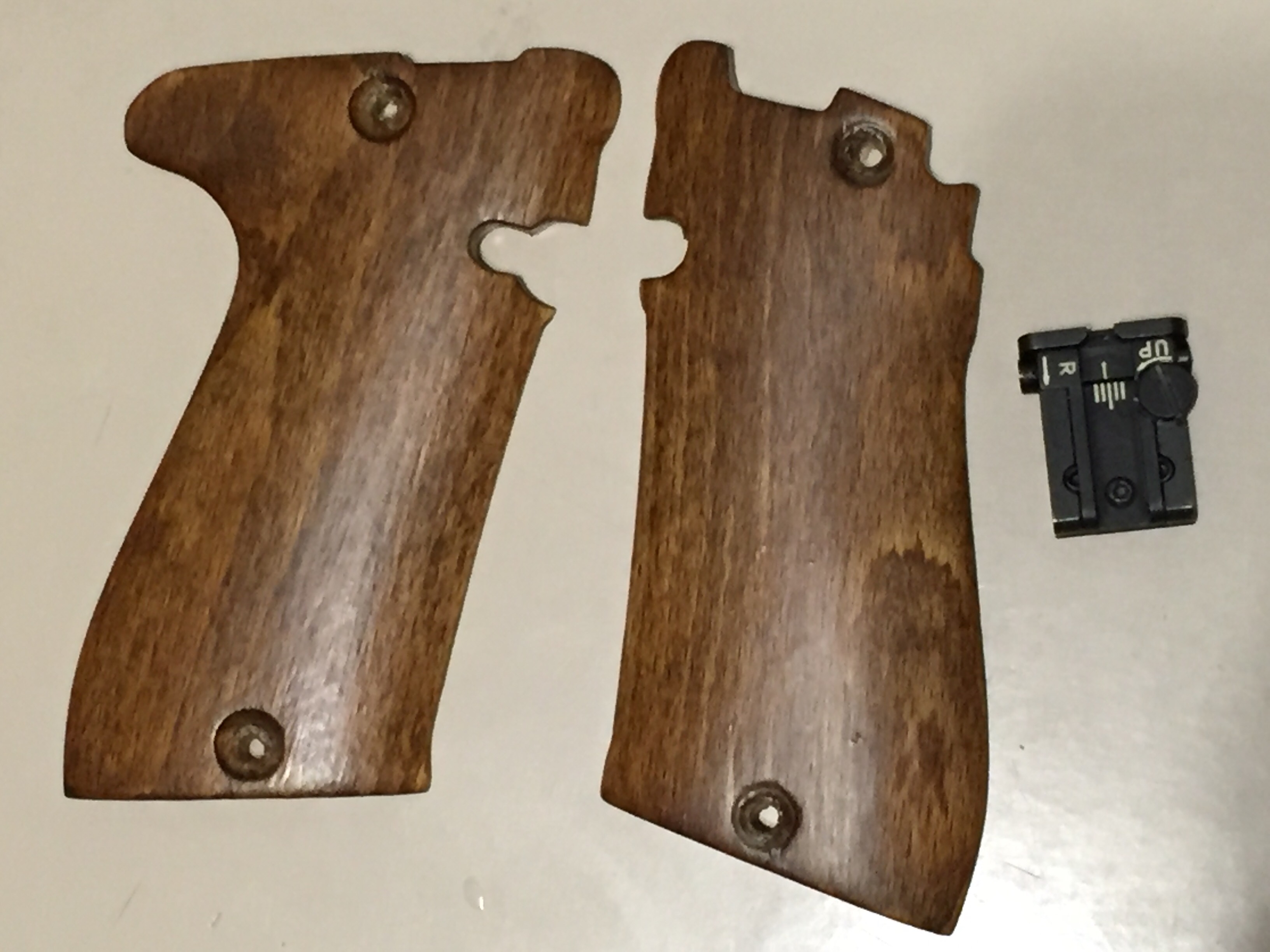 Vendo pistola calibre 22, con un cargador. Tambien vendo accesorios, un juego de cachas de madera, caja original y miras micrometicas.