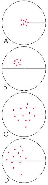 vivillo escribió:Pues no sé, pero imagino que precisión es el A, exactitud el C y nada el B y el D.No e mirado en Internet en