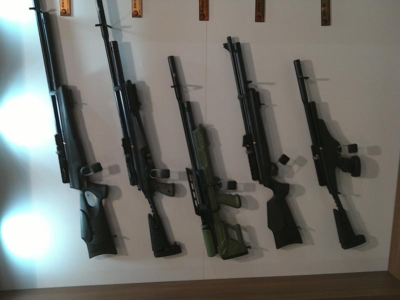 ahi tenemos los bulpup de hatsan Gladius y Bulboss , pesados de cojo...la pistola ATP2-QE, y el otro expositor el Hercules, Nova ,Trophy y Nova Compac