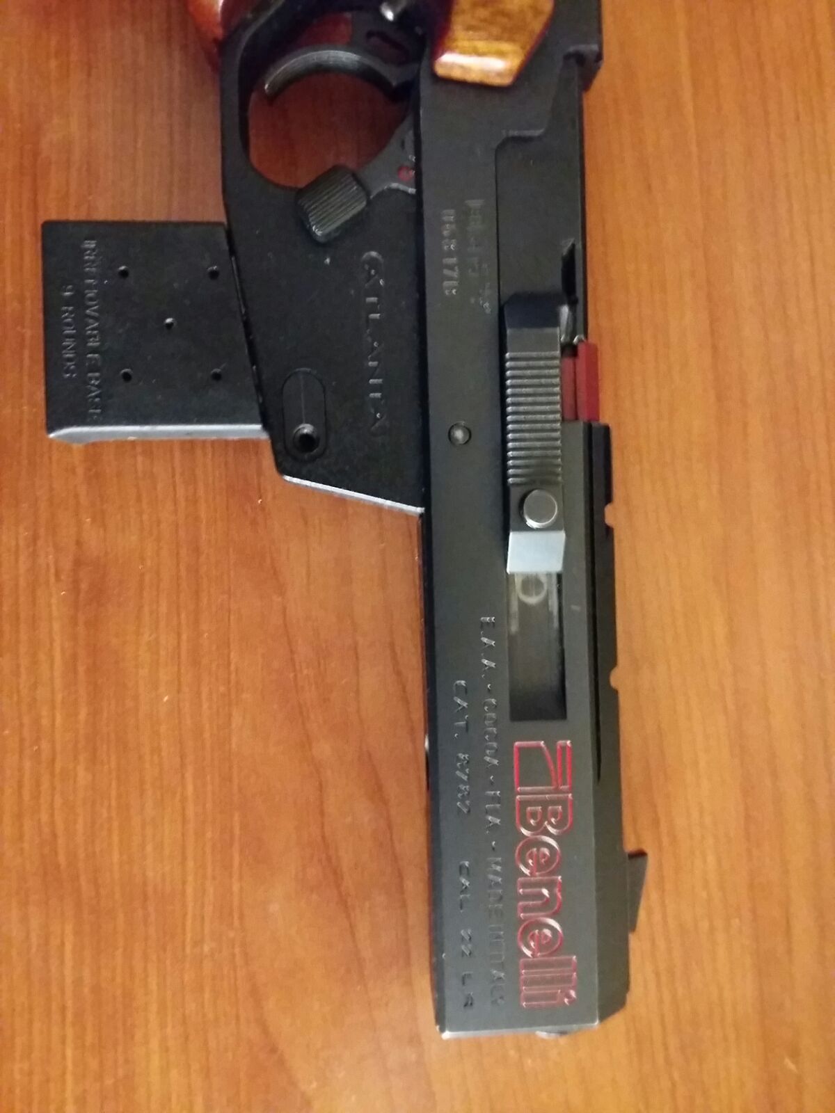 Hola. Se vende Benelli 95, 22Lr. muy buena pistola para competir, equilibrada ,precisa y fiable. Con sus accesorios originales. Maletín de PVC. dos cargadores y dos cachas de nogal, la original y otra comprada a parte, talla "M" que es la que tiene puesta. 425€ portes incluidos a la península.