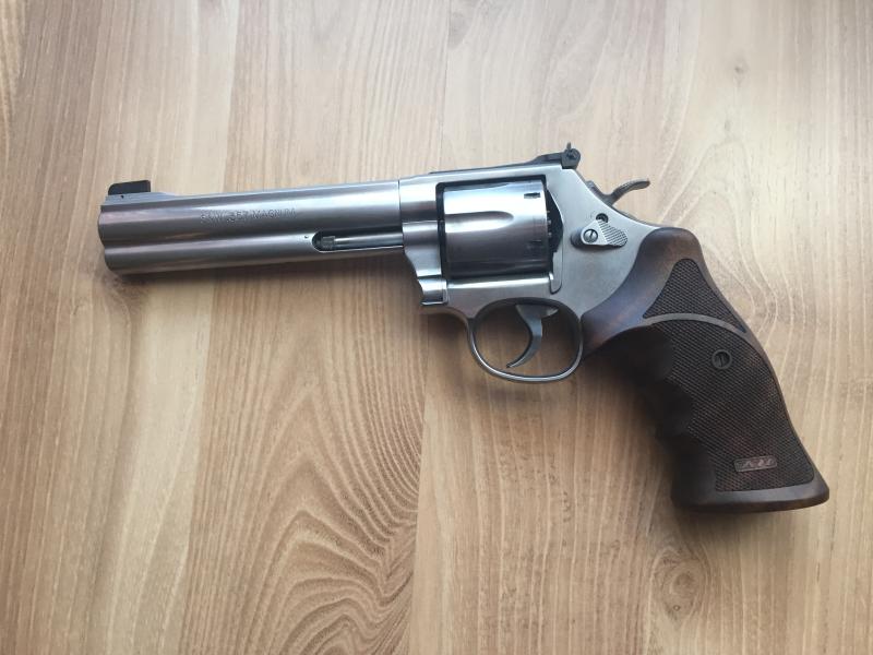 Pues eso vendo revolver Smith- Wesson de 6 pulgadas, Modelo 686 Target, con cachas de madera Nill.