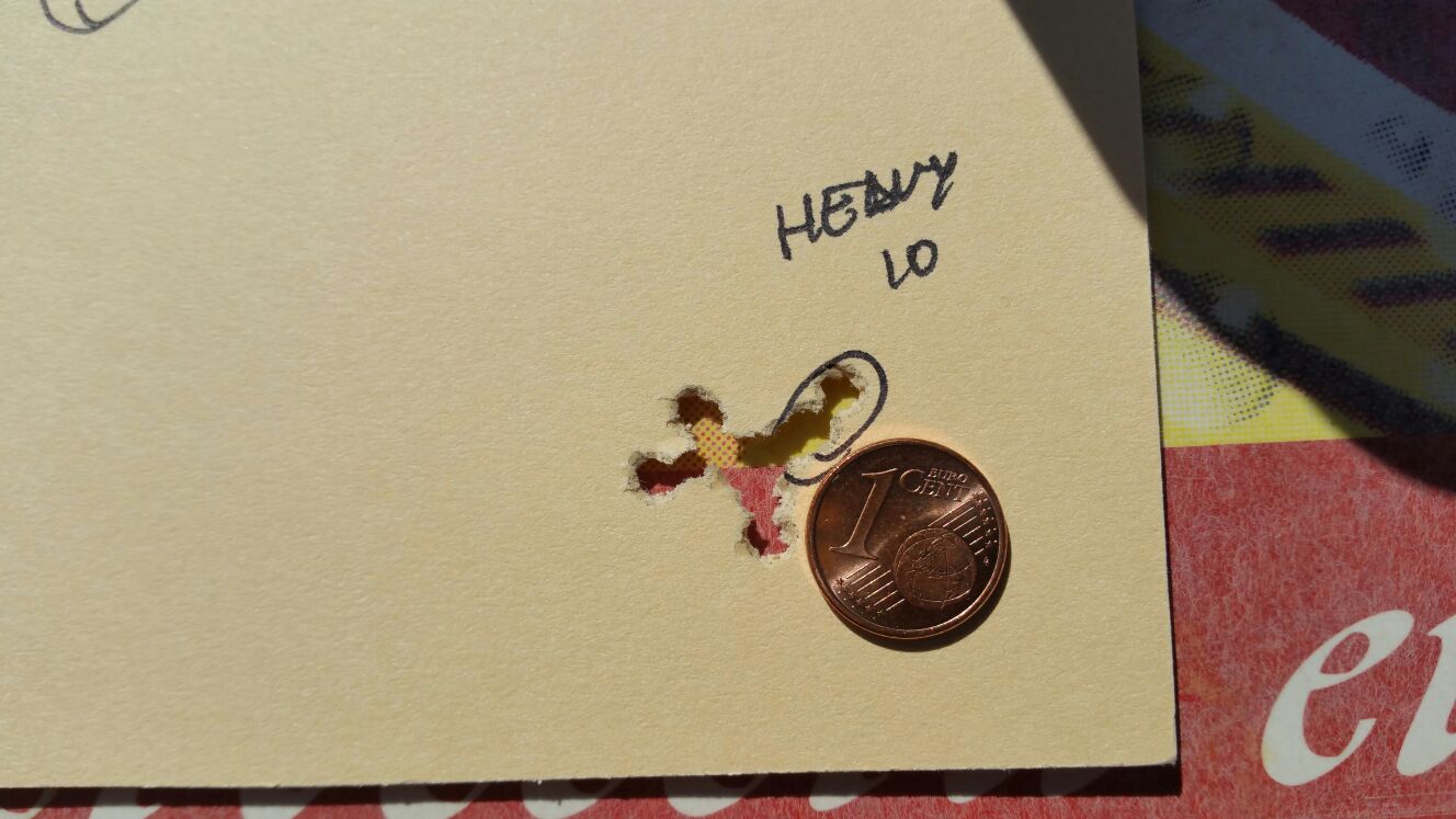 Os dejo las primeras dianas a 30 metros en exterior con ligero aire. 10 en cada grupo