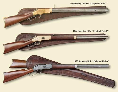 El mecanismo de la foto parece de un winchester modelo 1866 o1873, (llamados asi como todos sabemos por su carcasas amarillas) que era el mismo mecanismo del henry escepto la introducion del cartucho, no de tigre. este fue producido a partir de 1915