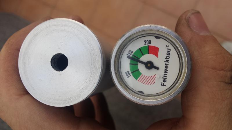Más fotos con el deposito de 20cm cargando a 200 bares justos da 40 tiros regulados a casi 12j hasta los 90 bares.