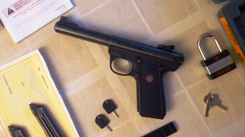 El modelo MK-I fué el inicial que sacaron apenas acabada la II guerra mundial ante la demanda de lugers que había en america, una arma de un calibre superpopular, económica y robusta (lo de sencilla lo dejamos aparte, los que la intentan desmontar por primera vez saben de que hablo) que fué un superventas hasta la actualidad. La popularidad de este arma en USA es inmensa, hasta los Navi Seals disponen de un modelo adaptado para uso silenciado. Es robustísima, dicen que es la única que puedes disparar indefinidamente en vacío, sin aliviapercutor, que no te cargas la aguja (mejor evitar creo yo)