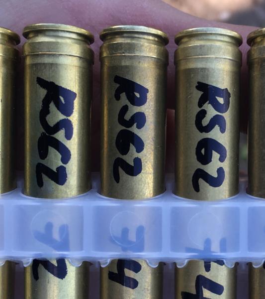 En cuanto a lo del cambio de tonalidad del latón, te pongo una foto. Esas vainas sólo han sido re calibradas una vez y disparadas solamente con la carga original Y ya tienen el cambio de tonalidad que indicas.