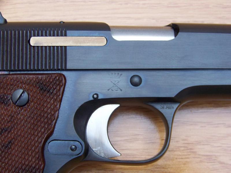 Como veis, en estas se optó tambien por trasladar el emblema de la parte delantera izquierda de la corredera a la parte derecha del armazón, sobre el gatillo del arma.