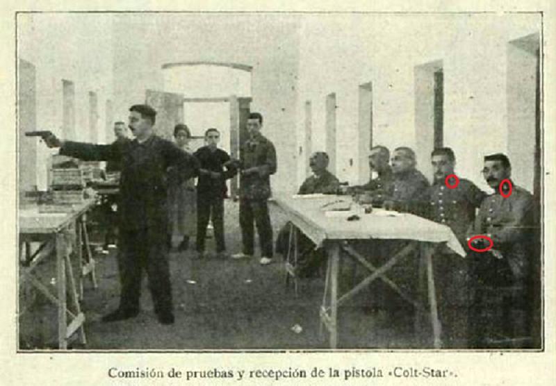Como reza el pie de foto es una imagen de la Comisión de Pruebas y Recepción de la pistola "Colt-Star". Podría tratarse por tanto de una imagen tomada durante las pruebas realizadas a la Star Modelo Militar 1920 por la Guardia Civil entre finales de Noviembre y principios de Diciembre del año 1920.