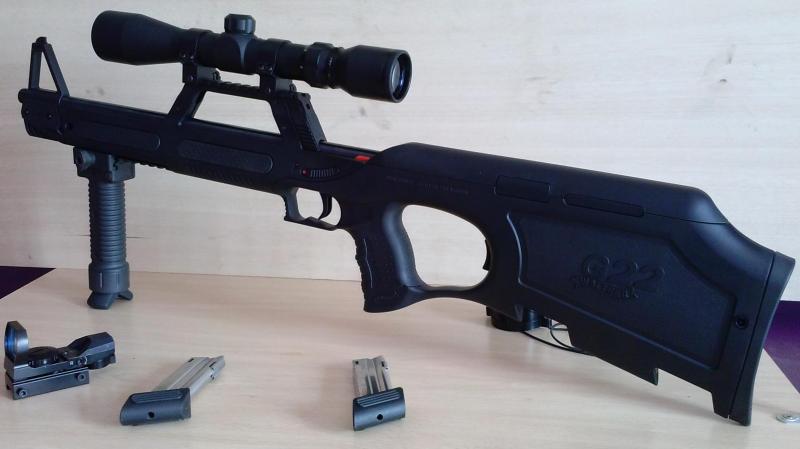 Se vende carabina semiautomática Walther G22 calibre 22lr, prácticamente nueva, color negro mate, dos cargadores de 10, maletín rígido, montura y visor Walther 3-9x40, puntero láser Walther, visor punto rojo, puño táctico/trípode, cañón con rosca para acoplar bocacha apagallamas, precio 450 €, whatsapp 645556481