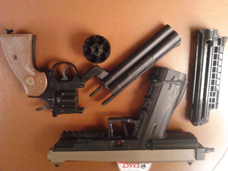 Ahora las otras dos, una la conocereis por ser de Crosman y basada en su modelo 357 al que le han añadido otro 3, denominandose 3357 y resultando ser una marcadora de paintball del calibre 5.0, fuè de las primeras asi que es bastante rùstica e ineficaz para el paintball pero su aspecto resulta impactante, de hecho en USA es un objeto de culto muy cotizado.