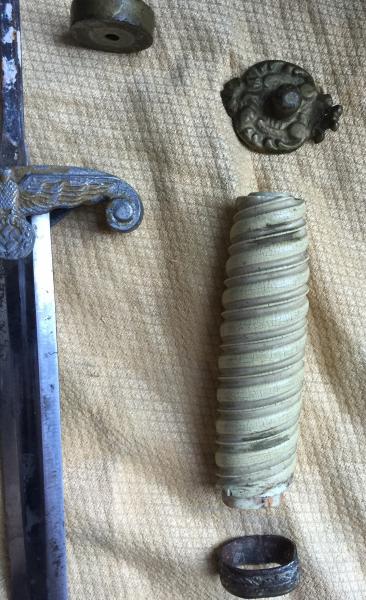 La ha tenido en el desván durante muchos muchos años, y al hacer limpieza salió esto, junto a otros efectos militares perrenecientes a su abuelo. Salieron uniformes, gorras, botas y hasta una cartilla alemana. De todo esto no se quiere deshacer, pero de la daga no le importa demasiado porque es de pocas armas.