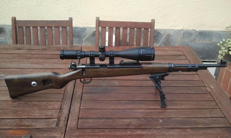 Se vende esta carabina clon del Kar98 de entrenamiento en el ejercito del Tercer Reich. Esta en muy buen estado y como complementos tiene 3 cargadores de 5 cartuchos, bipode extensible y un visor Sniper de Precisión Optics siendo sus características 4x16x50. Realmente una carabina muy divertida.