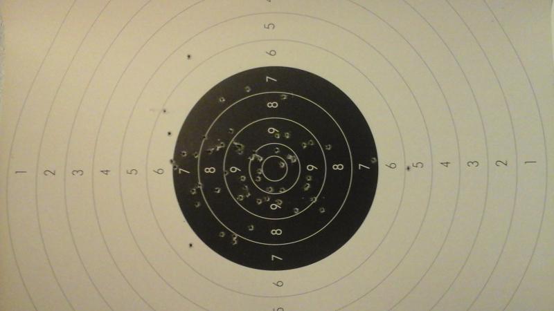 Bueno, adjunto foto, hay que decir que fué un dia excepcional, un poco de todo, punto bajo, aunque menos, estuve limando la zona alta de la cacha la "UVE" que queda entre el pulgar y el índice, había puesto pastas hace tiempo para encajar la mano y en este punto "CREO" que hace bajar el punto. Un poco más cómodo tirando, era entreno