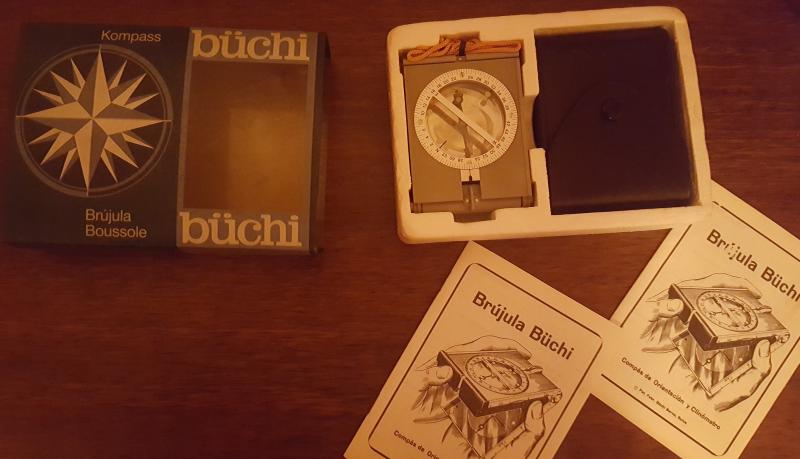 Brújula Suiza marca Büchi, sin estrenar en su caja original con el manual, funda de cuero y varios, dicha 02