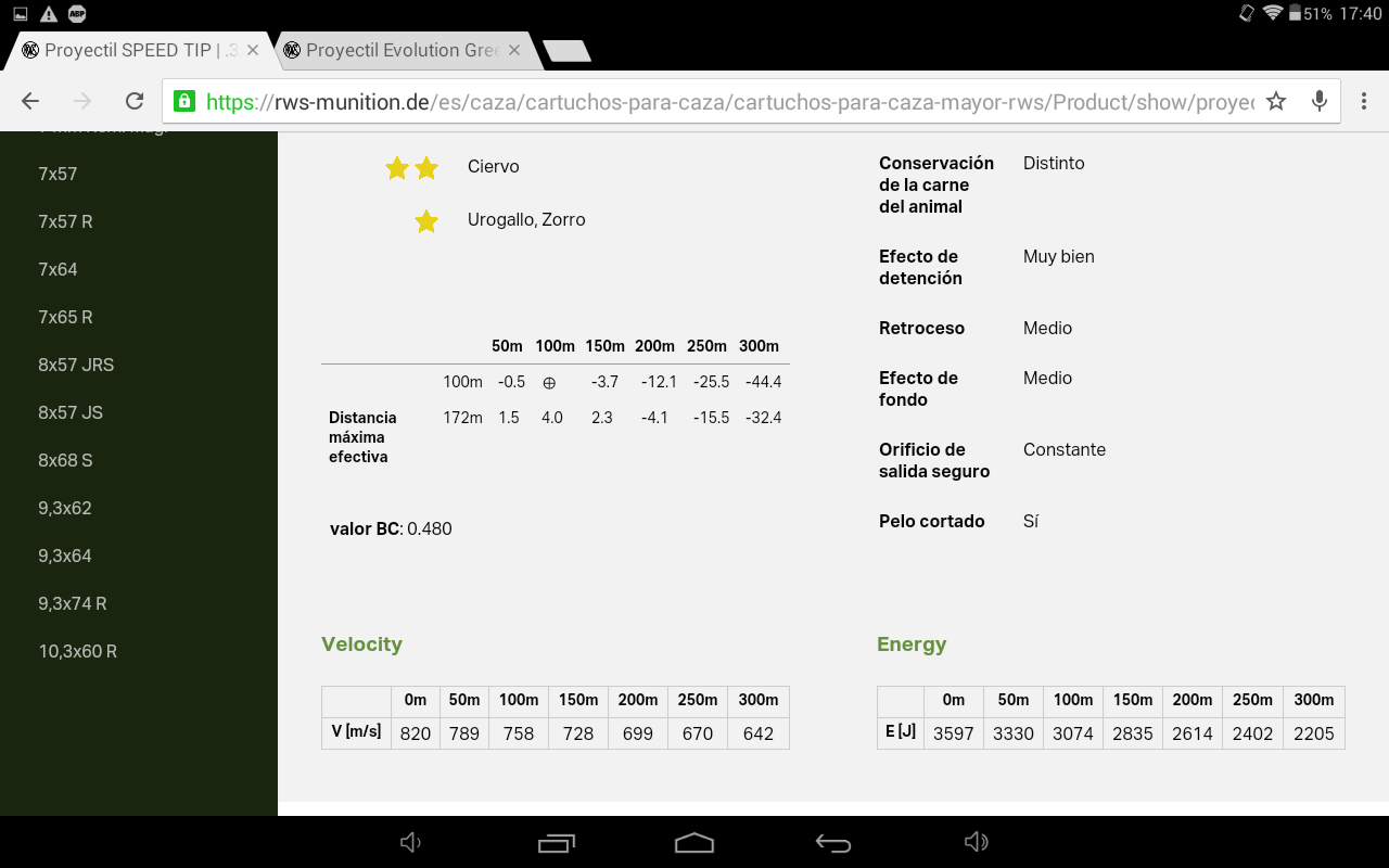 Para Montería ya tengo el 9,3 , este sería sólo para rececho, aunque me estoy planteando lo del calibre, acabo de ver las tablas en la página de rsw y la verdad no le saca mucho a mi 9, según eso