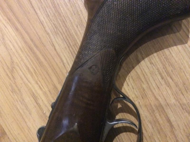 Hola por lo que me parece ver en la foto esa culata se quebró alguna vez por la garganta y la repararon poniéndole un taco de madera redondo encolado y después disimulado para que tuviera una estética decente.