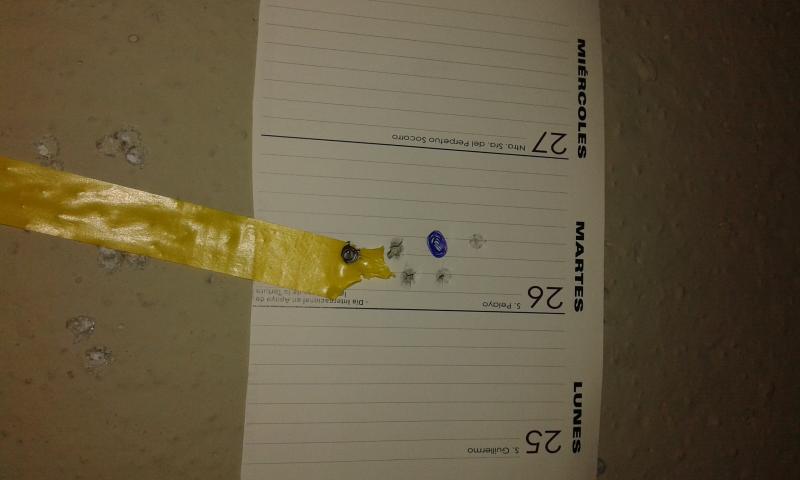 Con el arma calibrada a un trozo de hoja de calendario casi de bolsillo( objetivo pequeño)