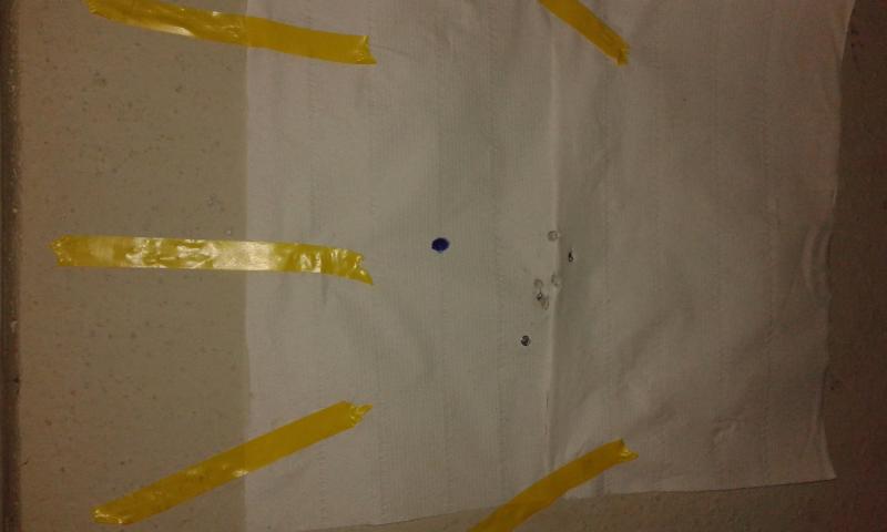 Con el arma sin calibrar a dos trozos de papel industrial(un objetivo medianamente grande)