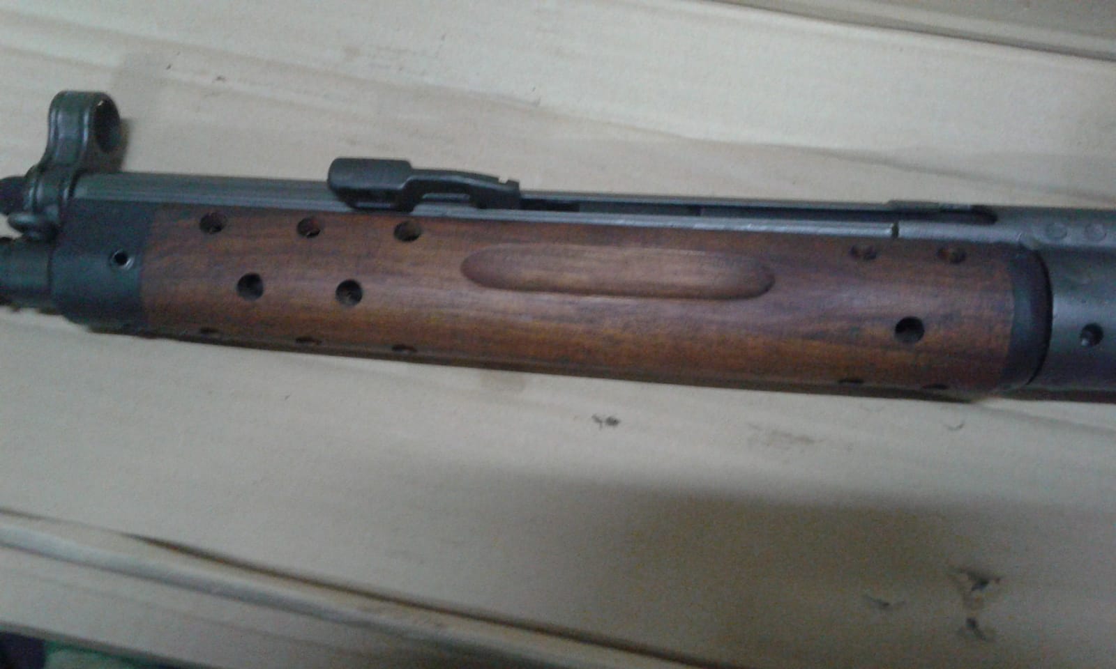 Soldiers me ha mandado fotos del rifle y las maderas están de un color muy cutre, parece usado, sin embargo las de Fiol son de color claro, muy chulas.