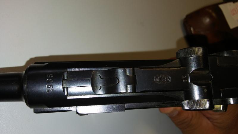 No veo bien el.logo, puede ser de cinco líneas o no. Hay que ver el.sufijo de la.pieza. V sería lo más previsible, pero sin embargo para ser V y corredera de 1936 el serial es demasiado alto....Podría ser por esa razòn en U, algo excepcional siendo una Banner. A falta de perfilar detalles y despejar dudas del marcado, está claro que es un modelo civil por el Banner, y me decantaría por un armazòn tipo Suizo de DWM al.que en 1936 le montaron una corredera de Mauser. En 1936 todavía se utilizaban remanentes procedentes de DWM desde que en 1930.se produjo el.traslado de la producción de Luger desde Berlín (DWM) a Oberndorf (Mauser). Pero también podría ser de producciòn Mauser....