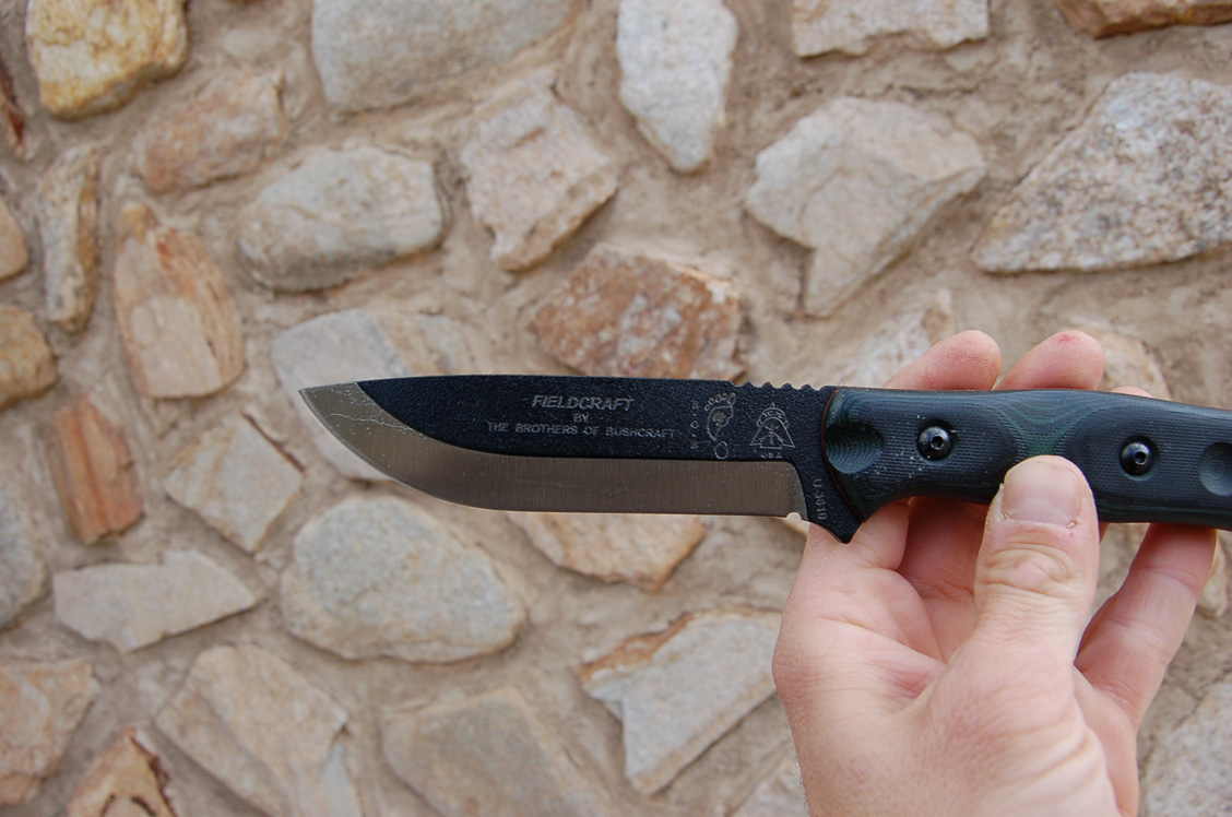 La hoja es de acero 1095 con temple diferencial. Aseguran los de Brothers of Bushcraft, que al superar su límite de elasticidad no parte sino que se dobla, por lo que no te quedas "colgado" y sin cuchillo en medio de lo que sea que estés (a saber: ellos son muy brutos).