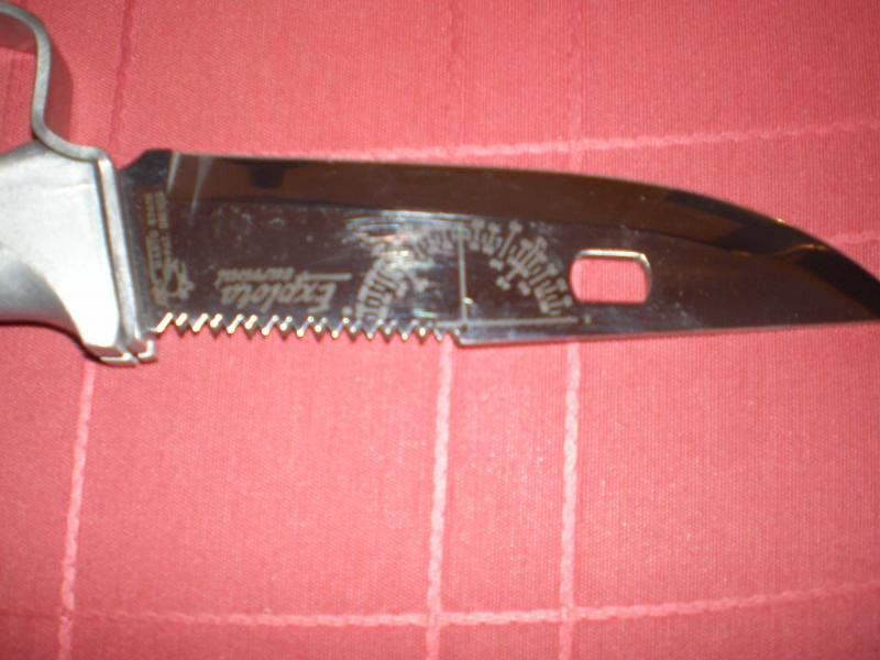 Bueno ya puedo poner fotos, el cuchillo esta nuevo no a cortado o quizás papel, guardado en cajón, fallos no tengo la caja, la pintura de la empuñadura esta tocada como se vera en la foto, es de sobarlo no de usarlo, si en la hoja se ve algo es fallo de la foto, el tubo de supervivencia esta lleno pero no lo abro pues sale el polvo de las cerillas o no se que es pero esta en su estado original, al igual que la pintura que es fácil de arreglar, lijar y pintura al horno.