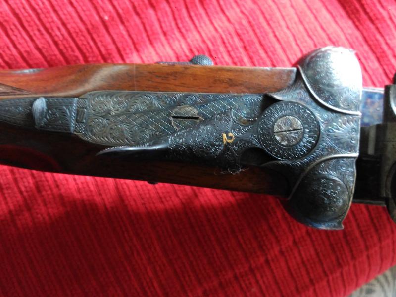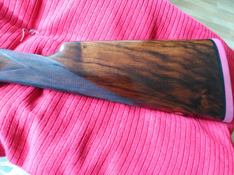 Normalmente las modelo 56 se hacían para pichón , pero ésta es de unas series que encargó la casa Purdey específicamente para caza . Culata inglesa, cañón de 71 cm, 3 y 1 estrellas y acero Boehler Antinit, no el Bellota o Cromo Niquel y apertura automática.