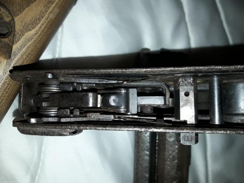 Está inutilizado con seis agujeros en el cañón, la recamara está soldada, el mecanismo del gatillo funciona pero le falta la pieza donde iria el percutor. No dispara en vació pero podría hacerlo.