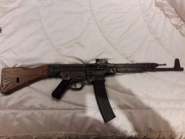 Está inutilizado con seis agujeros en el cañón, la recamara está soldada, el mecanismo del gatillo funciona pero le falta la pieza donde iria el percutor. No dispara en vació pero podría hacerlo.