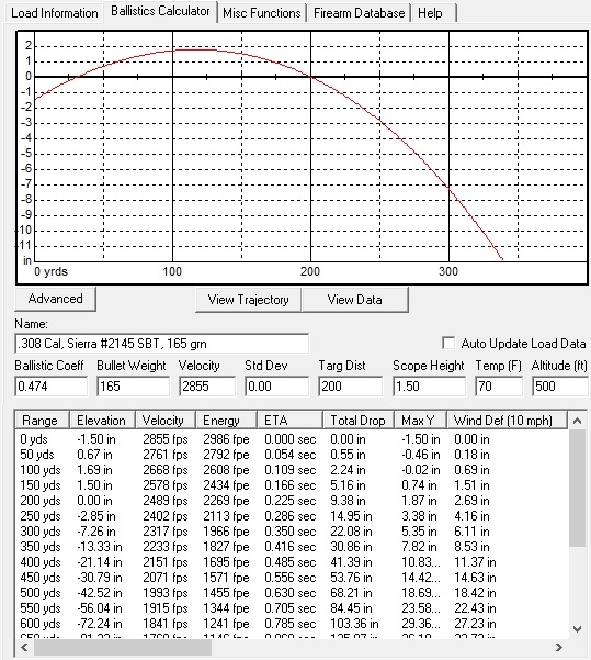 Aquí te dejo la tabla que mis pruebas me dieron en su día, para una punta Sierra de 165 gr. Spitzer boat tail, en la velocidad que mejor precisión conseguí.