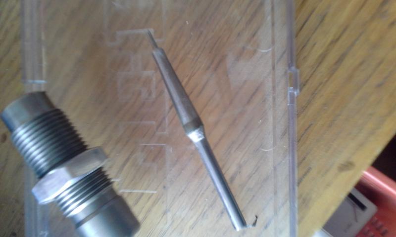 En tu caso una vez hecho el recalibrado, y estoy suponiendo, pasaras al segundo die, para abrir el cuello, pero no hara su trabajo porque la aguja al entrar en exceso ya lo ha hecho en demasia.