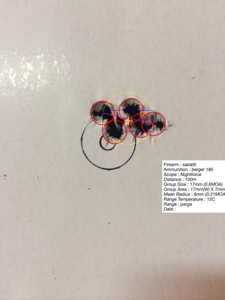 Esta que adjunto es con munición comercial de la barata, Prvi 165gr HPBT, a 100m (no tengo cerca campo de mayor distancia donde tirar), por si sirve para las preguntas del compañero que encabezaba el foro.